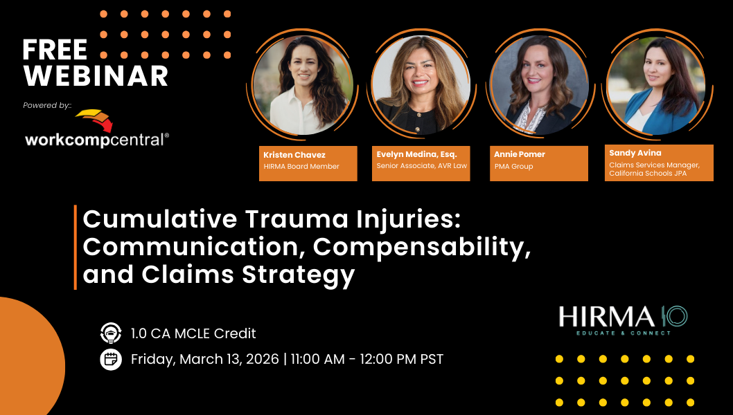 A central theme of this session is the importance of communication. Effective collaboration between employers, adjusters, counsel, and medical providers can significantly impact how cumulative trauma claims are handled and resolved. This webinar will emphasize why talking to each other more and earlier leads to stronger strategies, better outcomes, and reduced risk.