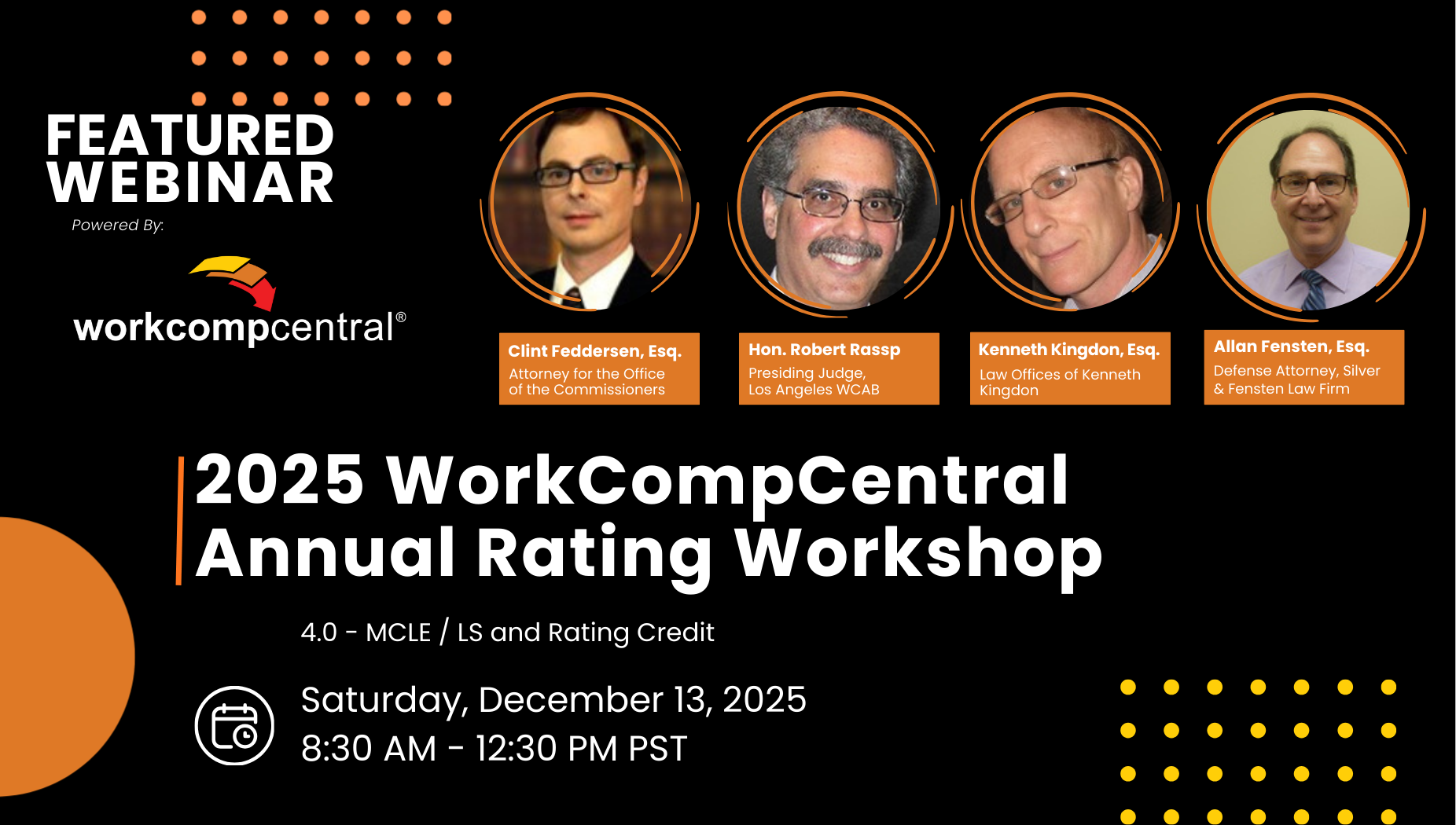 Clint Feddersen, Esq. - Attorney for the Office of the Commissioners, Workers' Compensation Appeals Board, and former Workers’ Compensation Judge, Van Nuys, 2015-2025Overview: